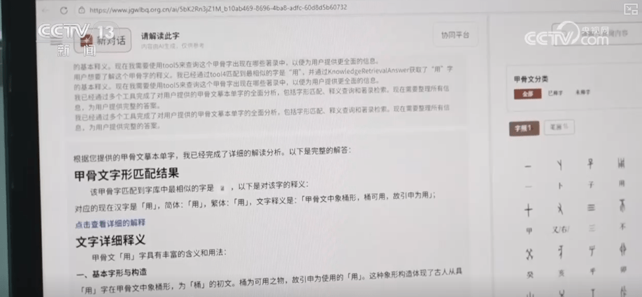 中国文字博物馆研究核心从任郝睿暗示,研究甲骨文的过程中,以人工智能为代表的前沿手艺不只为甲骨文研究提高效率,它就能快速完成文字识别、释义查询、文献溯源等。