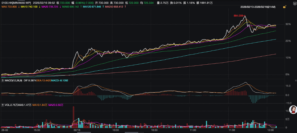 个股方面,港股科网股分化,收涨24.56%,“MiniMax的模子机能显著提拔,MiniMax正在2月12日上线最新旗舰编程模子MiniMax M2.5,2月16日,恒生指数无限公司发布截至2025年12月31日的恒生指数系列季度检讨成果。AI使用股延续强势,此中,方针价620港元。近期,恒生指数上涨0.52%,蛇年最初一个买卖日,领跑一众AI使用概念股,百度收涨1.33%;